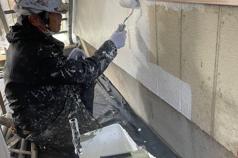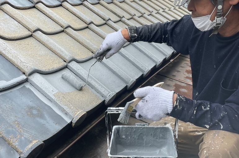 屋根の洗浄や補修が終わってから下塗りを行っています。