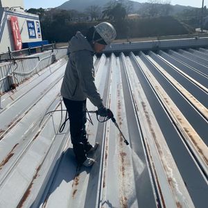 伊万里市 エコエコ様 店舗の外部塗装と雨漏り補修 錆止め後コーキング